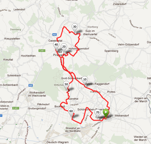 auf Radwegen: Gänserndorf - Schönkirchen - Bockfließ (Labstation) - Zuckermantelhof - Gänserndorf