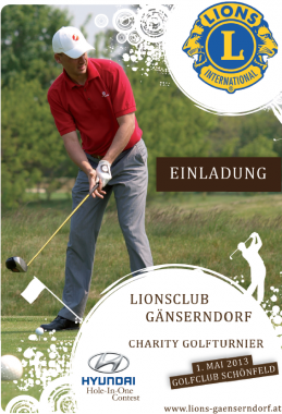 Am 01.05.2013 ab 10:00 heißt es wieder "Hole-in-One" auf der wunderschönen Golfclubanlage in Schönfeld für alle Golfbegeisterten. Der LIONS Club Gänserndorf ladet alle Golferinnen und Golfer herzlichst zum Mitspielen ein und freut sich über jeden Besucher an der Driving-Range zum Schnupper-Golfen mit Trainer.